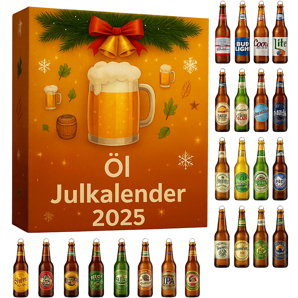 ✅ 24 överraskningar – allt från miniflaskor och öldekorationer till whiskydetaljer och kreativa prylar.
